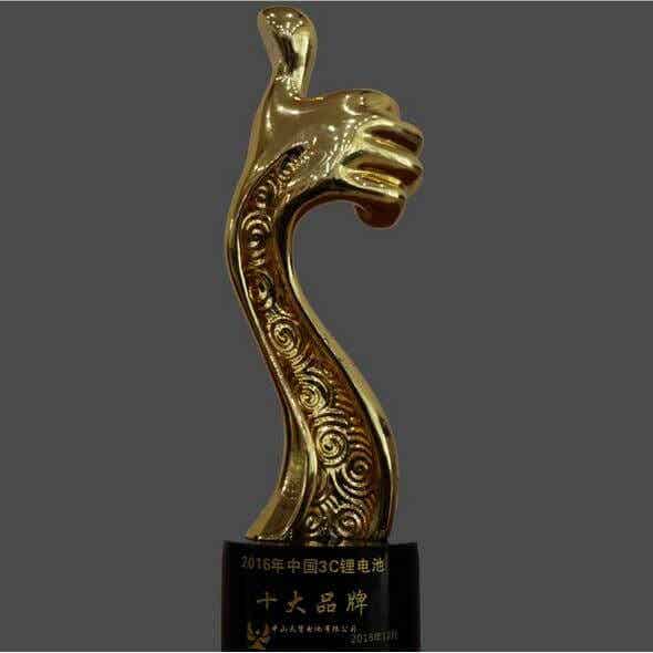 附圖1:榮獲“2016年中國3C鋰電池十大品牌”獎(jiǎng)杯