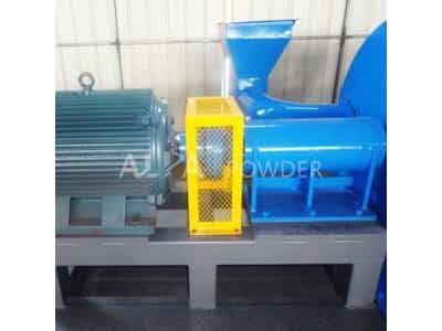 物料由加料系統均勻的送入粉碎室,受到高速旋轉的粉碎盤的強烈沖擊,同時受到離心力的作用,與粉碎齒圈發生碰撞,受到剪切、摩擦、碰撞等多種綜合力的作用,使物料粉碎,被粉碎的物料隨氣流運動到分級區,通過變頻調節的分級輪,對粗細物料進行分離,符合細度要求的產品隨氣流進入旋風收集器和除塵器收集,粗細料返回分級區二級粉碎。