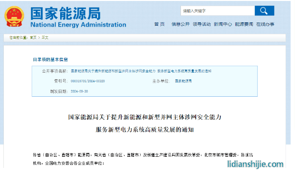 國家能源局關(guān)于提升新能源和新型并網(wǎng)主體涉網(wǎng)安全能力