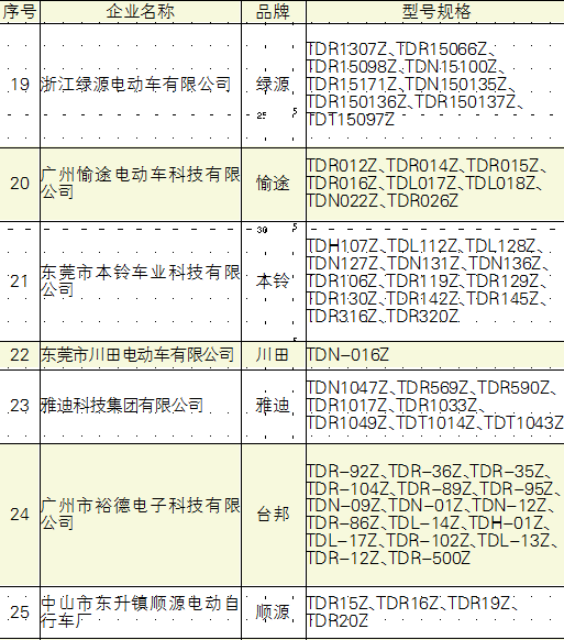 廣東省電動自行車生產企業及產品目錄(第一期)