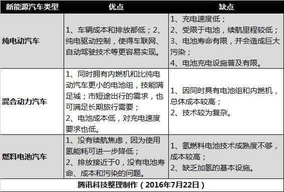 新能源汽車主要分為純電動汽車、混合動力汽車與燃料電池汽車三類,這三類汽車的主要優缺點如下: