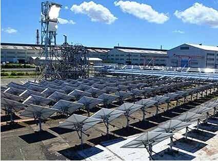 混合集中式太陽能發電系統,其中包括了一臺塔式太陽能熱發電裝置、以及一套低溫低成本的菲涅耳蒸發器。
