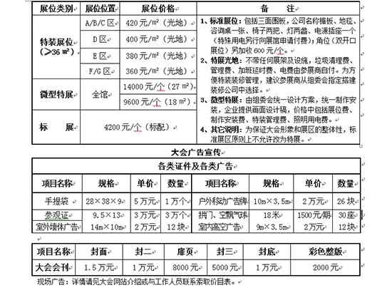 2、每個微型特展面積18-27平方,高4.5米;由組委會統(tǒng)一提供標準裝修,并制作安裝,申請企業(yè)提供畫面設(shè)計稿,價格中包括展位費、制作安裝費、特裝管理費、電費;