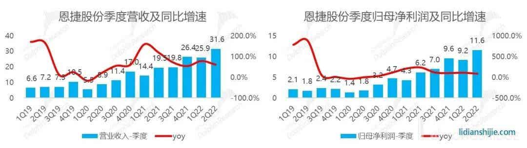 公司 2022 年二季度實(shí)現(xiàn)歸母凈利潤(rùn) 11 億元,同比增 88%;二季度的收入是 32 億,同比增長(zhǎng) 62%;收入和利潤(rùn)分別都是完成了全年市場(chǎng)預(yù)期(利潤(rùn) 50 億,收入 139 億)的大概 23% 左右,基本落在正常范圍之內(nèi)。