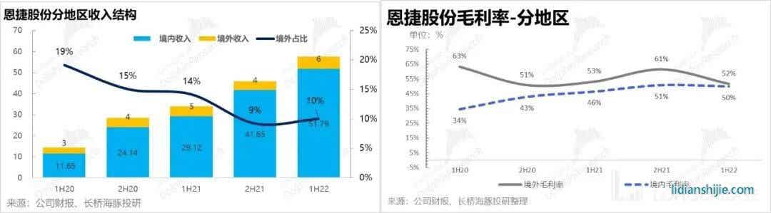 收入、利潤(rùn)穩(wěn)健如牛,而且背后所體現(xiàn)得公司在濕法隔膜上全球市占率、市場(chǎng)地位也是一貫的穩(wěn)固。穩(wěn)固的市占率和顯著超越電池產(chǎn)業(yè)鏈同行的毛利率,也讓它作為行業(yè)的龍頭,沒有去博弈和傳導(dǎo)漲價(jià)壓力,同時(shí)中國(guó)動(dòng)力電池廠市占率強(qiáng)勢(shì)提升,也影響了它海外收入占比的結(jié)構(gòu)性提升,這些因素都短期影響了毛利率提升的邏輯。