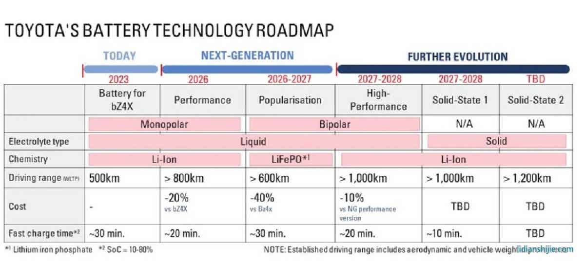 除此之外,豐田第二款高性能鋰離子電池也將在2027年-2028年問世,其續航里程將提升到612英里(1000km),且成本還將降低10%,預計是豐田未來的主力電池。