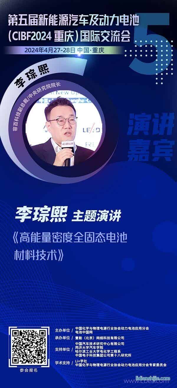 此外,2024年4月28日上午,寧波容百新能源科技股份有限公司集團副總裁/中央研究院院長李琮熙,將在“第五屆新能源汽車及動力電池(CIBF2024重慶)國際交流會”上,作題為《高能量密度全固態(tài)電池材料技術(shù)》的主題演講,分享其在全固態(tài)電池領(lǐng)域的最近研發(fā)進展。值得期待!