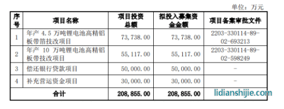 本次所募資金,永杰新材將用于年產4.5萬噸鋰電池高精鋁板帶箔技改項目、年產10萬噸鋰電池高精鋁板帶技改項目、償還銀行貸款項目,以及補充營運資金。其中共計8億元將用于還貸及補流,占擬募資額比例超過38%。