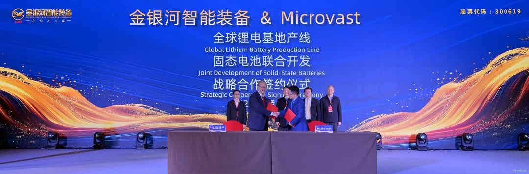 在科技大會上,金銀河與Microvast微宏集團簽訂“全球鋰電基地產(chǎn)線和固態(tài)電池聯(lián)合開發(fā)”戰(zhàn)略合作協(xié)議,雙方將展開深度合作,攜手共繪全球合作和固態(tài)電池開發(fā)的新編章。