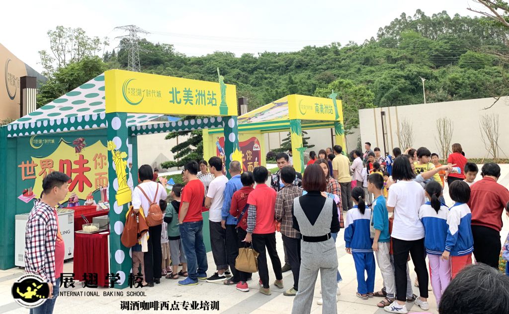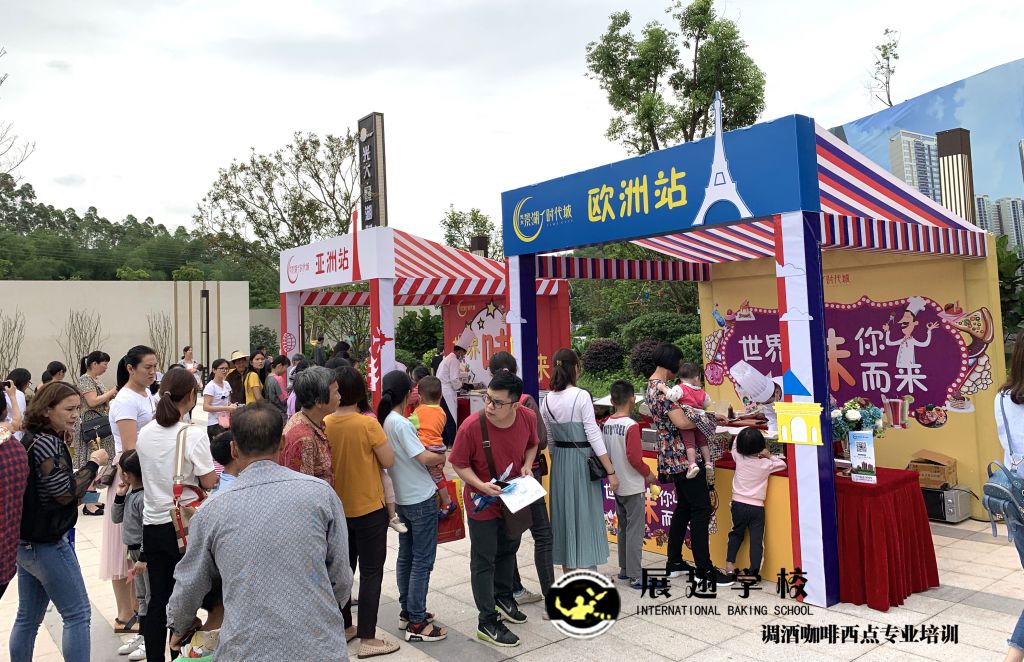 光大地產(chǎn)-云浮景湖時代城 五一異國風情嘉年華展翅調(diào)酒咖啡西點培訓學校學員糕點戶外實踐,這樣可以檢驗學員這段時間以來的學習成果,還能讓學員親自體驗下西點服務行業(yè)的工作,還能提升自己的技術和能力。