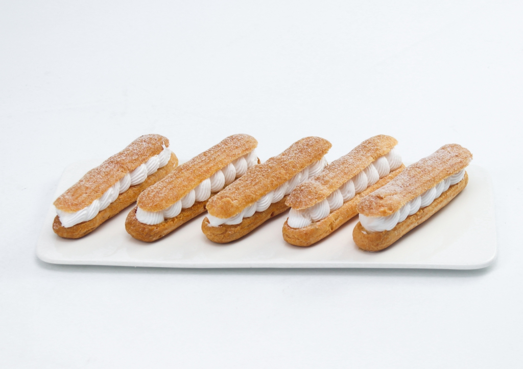 閃電泡芙是法國每家甜品店都會有的點心,傳說奶油和蛋糕結婚了,便有了奶油蛋糕,面包從此失戀了,它把對奶油的愛深深藏進了心底,于是有了泡芙。