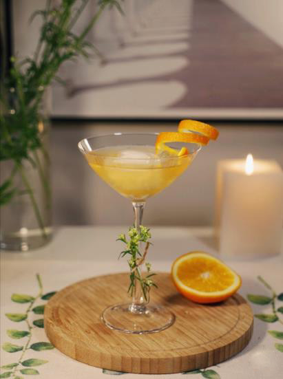 3.濾掉冰塊,將酒液倒入冰鎮過的馬丁尼杯。