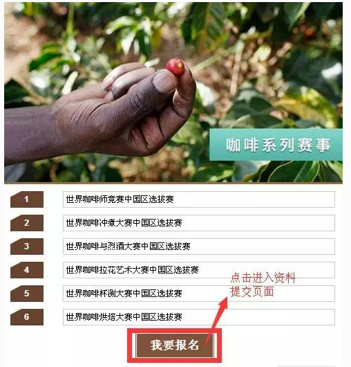 ![]() 廢話不多說,World Coffee Events(WCE)六大世界級賽事明年全面登陸中國,中國區賽事引進方上海博華國際展覽公司開通了報名通道,各位咖啡師或個人愛好者,請抓緊報名咯! ![]() ![]() 報名通道網址(文章底部“閱讀原文”可點擊進入): http://chaoyin.yunguits.com/coffee.php 進入頁面有各賽事簡介 點擊"我要報名" ![]() |