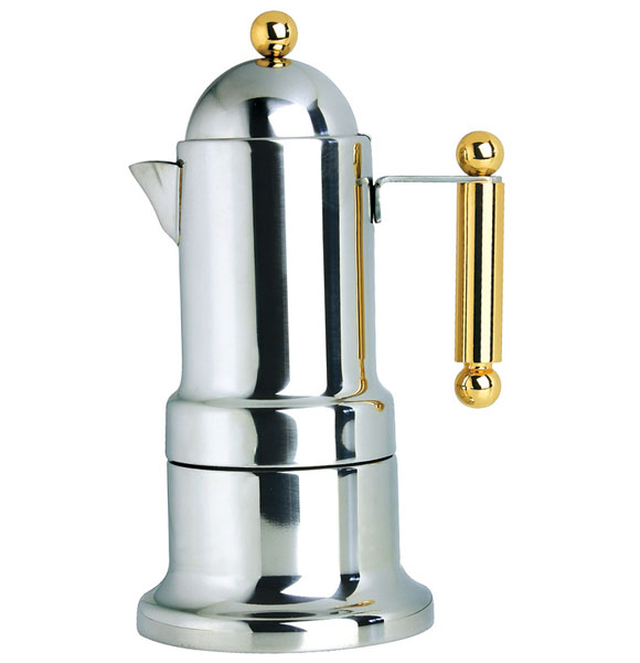 摩卡壺(Moka Pot)是一種用于萃取濃縮咖啡的工具,在歐洲和拉丁美洲國家普遍使用,在美國被稱為“意式滴濾壺”。 摩卡壺是兩層結(jié)構(gòu),放在下半部分的水煮開沸騰后,就會通過裝有咖啡粉的網(wǎng)狀濾器噴入壺的上半部分。雖然沒有使用氣壓就能將熱水注入中細度研磨的咖啡粉中,但嚴格來說這不能算是濃縮式萃取,而是比較接近滴漏式,但摩卡壺做出的咖啡仍然具有意大利咖啡Espresso的濃度和風味。