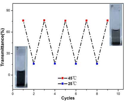 圖2 V2C@PDMAEMA懸浮液隨溫度調(diào)控的光透過(guò)率