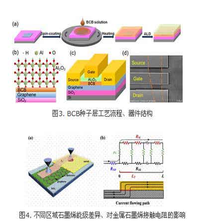 在石墨烯射頻器件的制備過程中,已有的柵介質(zhì)制備方法在工藝的可控性和器件性能方面具有一定的缺陷。四室研究團(tuán)隊利用旋涂的方法在石墨烯表面形成BCB薄膜,并以此作為種子層進(jìn)行了氧化鋁介電層的沉積生長。該方法不僅具有極好的工藝可控性,由于BCB特殊的化學(xué)結(jié)構(gòu),避免了對石墨烯性能的不利影響,實(shí)現(xiàn)了高性能石墨烯射頻器件的制備。
