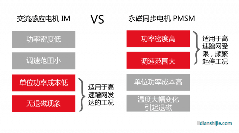 車用電機通常分為永磁同步電機和異步電機兩種。這兩種電機各有好處。永磁同步電機顧名思義它的磁場采用的是永磁鐵。也就是我們小時候玩過的磁鐵。由于磁鐵本身具備永久的磁性,所以我們就利用這種磁性來推動轉子運動。它的好處就是能量效率比較高,消耗電能比較少,因為產生磁力的過程并沒有消耗任何電能,但缺點就是由于永磁體的磁場有限,或者說不能無限制提高,所以它的最大功率會受一定的影響。
