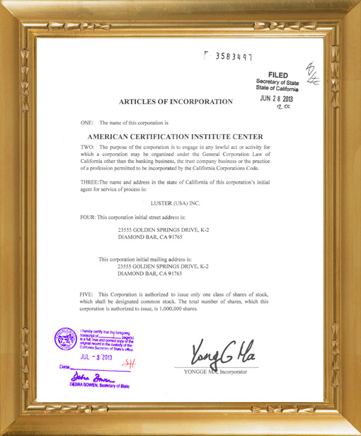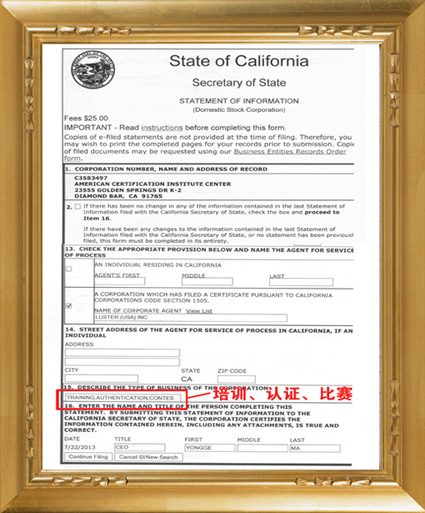 自2013年8月起,經ACIC美國總部同意,ACIC在亞太地區開始使用中文名稱為“美國國際資質認證中心”,并將此中文名稱在香港政府進行了注冊備案,受到法律保護。